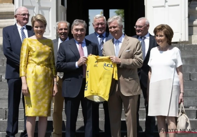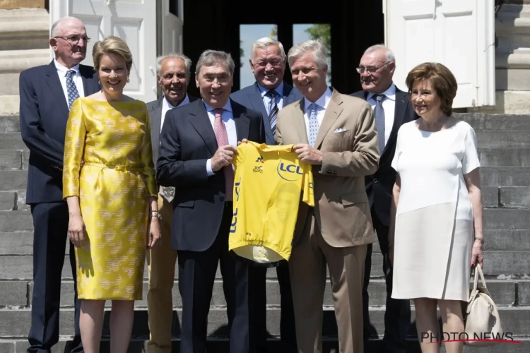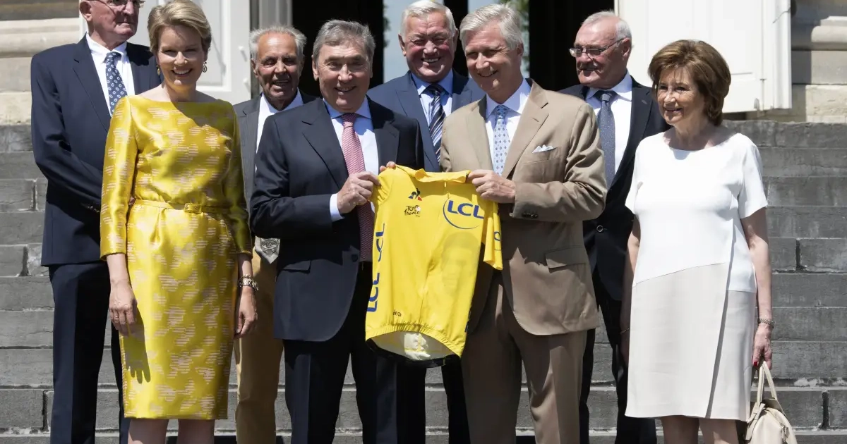 Op VRT NWS was immers een stukje te zien van de plechtigheid die daar in De Rotonde plaatsvond. Koning Filip ontving er Eddy Merckx. Koningin Mathilde had voor de gelegenheid een gele jurk aangetrokken. Merckx mocht vervolgens zijn echtgenote Claudine, zijn kinderen Sabrina en Axel en hun partners voorstellen.