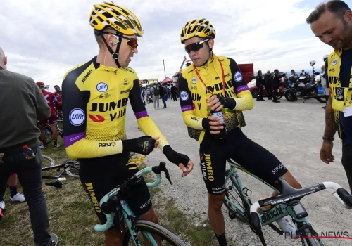 Geweldige dag opnieuw voor Jumbo-Visma. Van Aert won, kopman Kruijswijk won tijd op enkele concurrenten. "Het is ongelofelijk wat Wout doet en laat zien in zijn eerste Tour. Ik heb er geen woorden voor", vertelde De Plus bij Sporza. "Het was volle bak koers. Dylan (Groenewegen, red.) had zich laten verrassen, maar we hadden een mooi alternatief met Wout."