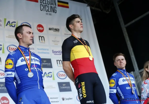 Dat heeft Van Aert uiteraard te danken aan zijn Belgische titel tijdrijden in Middelkerke, waar hij Yves Lampaert en Remco Evenepoel van de nationale driekleur hield. In de ploegentijdrit in de Tour mocht Van Aert zijn nieuwe trui nog niet aantrekken. Nu beschikt hij wel over dat recht.