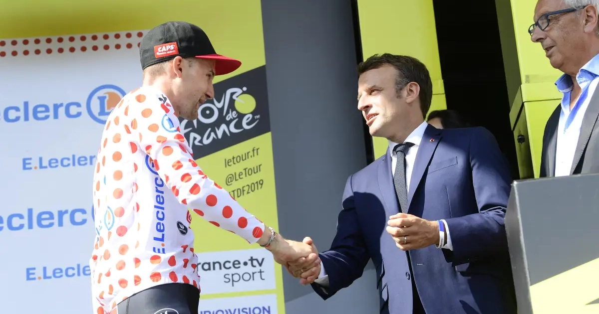 Tim Wellens mocht als drager van de bolletjestrui de hand schudden van president Macron tijdens de podiumceremonie na afloop van de veertiende Tourrit. De voorspellingen van Wellens kwamen helemaal uit en zelf deed hij het nodige om in de bollen te blijven.