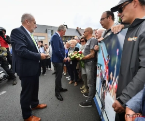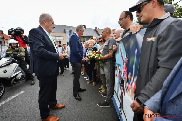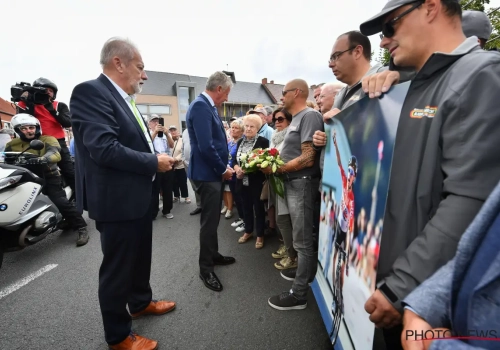 Pieter De Crem overhandigde bloemen aan de familie van de betreurde Lambrecht, het peloton had voor de start van de rit ook een minuut stilte in acht genomen.
