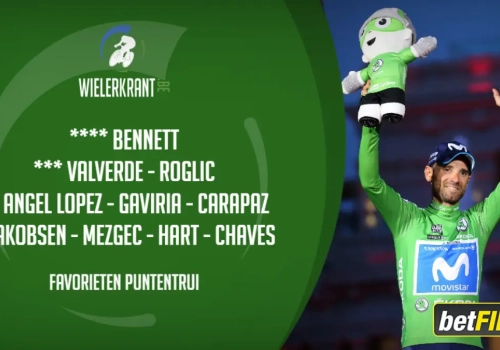 En dus komen we snel uit bij Alejandro Valverde, die vorig jaar nog het puntenklassement naar zich wist toe te trekken met 'amper' 131 punten. Ook namen als Miguel Angel Lopez, Primoz Roglic of Richard Carapaz zijn zeker favorieten te noemen: wie voor het eindklassement gaat, kan ook heersen in het puntenklassement.