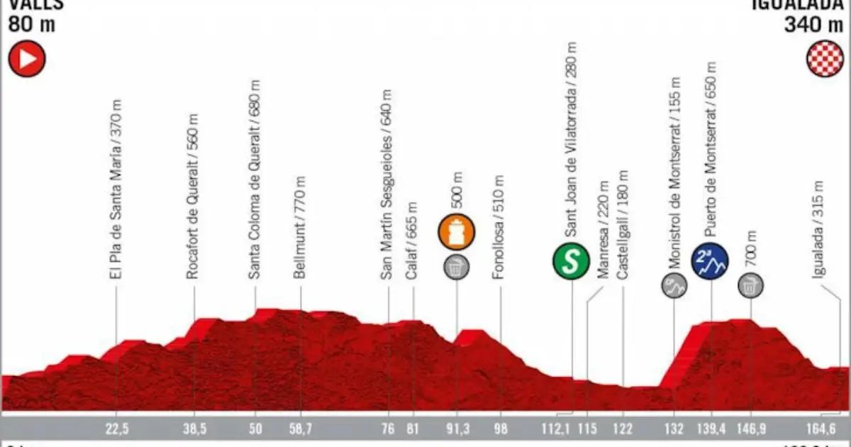 Rit zeven van de Vuelta voert het peloton van Valls naar Igualada. Het 166,2 kilometer lange parcours is heuvelachtig en biedt kansen voor vrijbuiters.