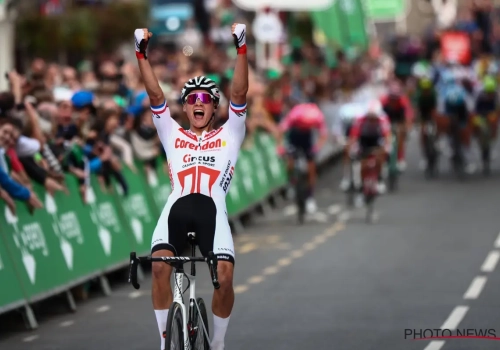 Enkel bij een diep beeld stonden de tegenstanders van Mathieu van der Poel nog net op de foto bij de aankomst van de vierde rit van de Ronde van Groot-Brittanië in Kendal. De Belgen presteerden in de breedte sterk op de lastige aankomst, maar Van der Poel was een klasse apart.