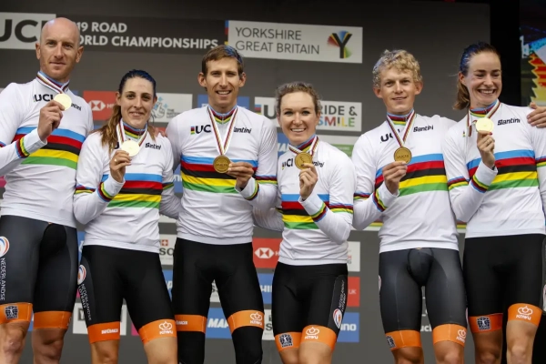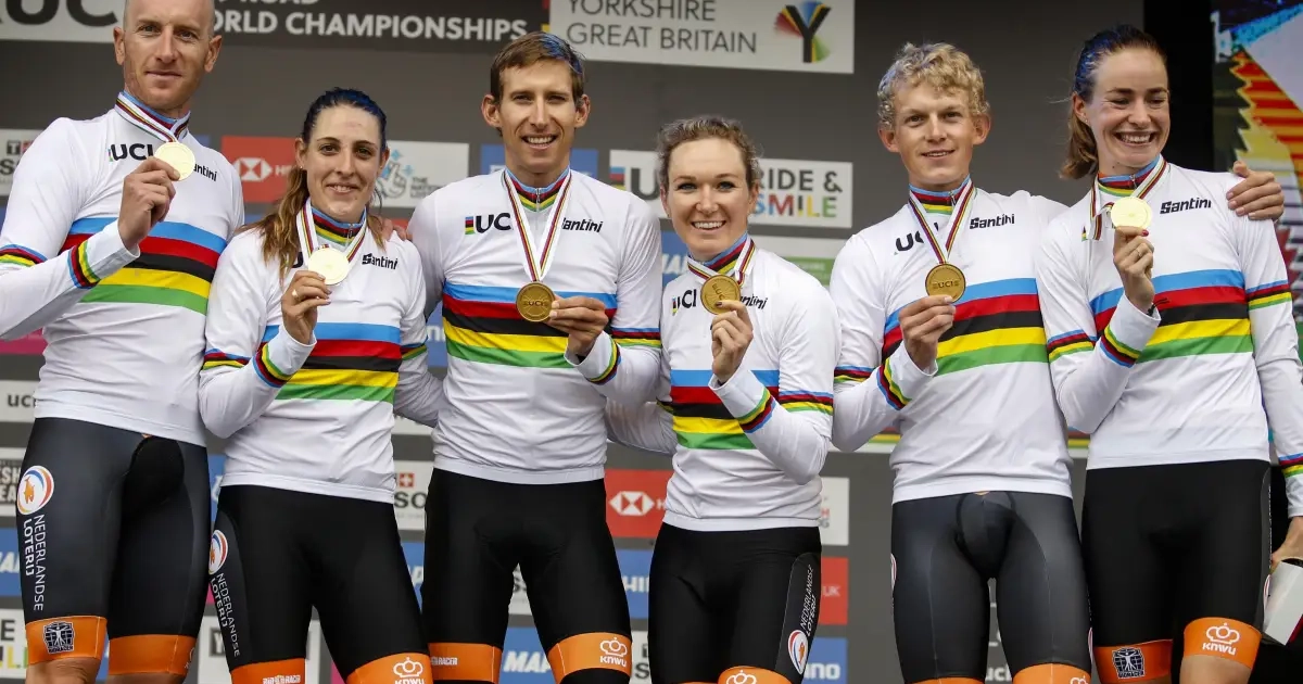 Zondag stond voor het eerst in de geschiedenis van het WK een gemengde ploegentijdrit op het programma. De Nederlanders behaalden de eerste wereldtitel. Opmerkelijk: Het zestal zal met deze zege meer verdienen dan de winnaar van het WK op de weg van komende zondag.