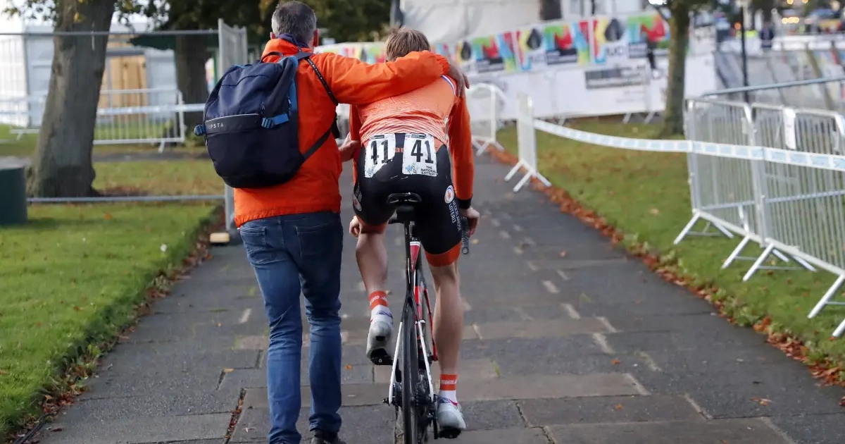 Nils Eekhoff sprintte gisteren naar de wereldtitel bij de beloften, maar werd een kwartier later gediskwalificeerd. Hij zou te lang aan een volgwagen hebben gehangen. Op 125 kilometer van de aankomst.