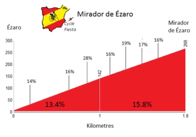 De Mirador is 1,8 km lang en gemiddeld bijna 14% stijl. Joaquím Rodríguez (2012) en Alexandre Geniez (2016) mochten er in het verleden al het zegegebaar maken. Nog eens vier jaar later zou er opnieuw vuurwerk verwacht worden op de Galicische muur.