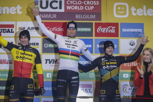 Naast Mathieu van der Poel en Toon Aerts mocht ook Corné van Kessel een beeldje in ontvangst nemen voor zijn prestatie in de Wereldbekercross in Namen. Van Kessel werd immers een erg knappe derde. Daarvoor moest het ook wat meezitten, maar het is zijn verdienste dat hij valpartijen kon vermijden.