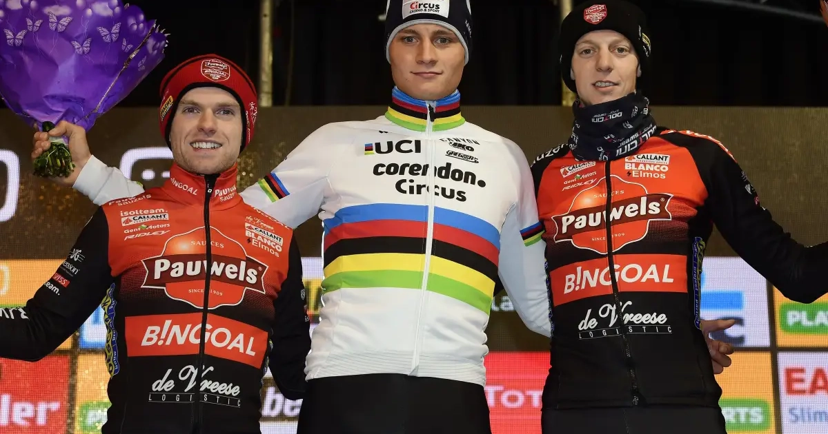 Michael Vanthourenhout heeft zich bij op het podium kunnen posteren in Diegem, naast Mathieu Van der Poel en Eli Iserbyt. Pauwels Sauzen-Bingoal heeft zo toch twee man bij de eerste drie. Van der Poel kloppen blijft nog wel een brug te ver.