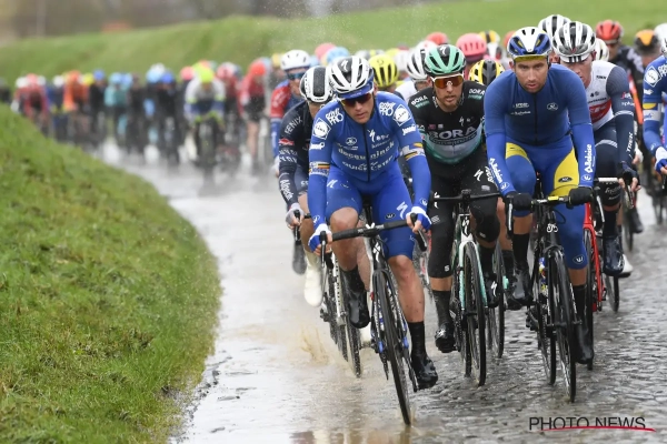 Een klein grapje van Lampaert, het geeft op zijn minst aan dat hij goedgemutst rondrijdt. Die podiumplek is ook echt wel een ambitie. "In Parijs-Roubaix is het al een keertje gelukt. We zijn hier allemaal om te winnen. We gaan volop voor onze kansen."