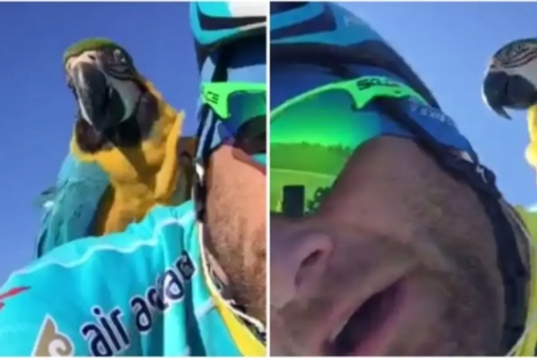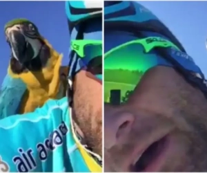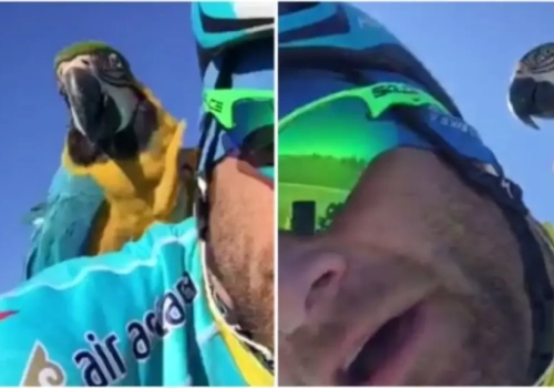 In 2017 is Scarponi verongelukt. De Italiaan reed vroegr op training samen met zijn papegaai Franky, maar ook het dier was van slag door de dood van zijn maatje. Nu lijkt Franky echter een nieuw maatje gevonden te hebben.