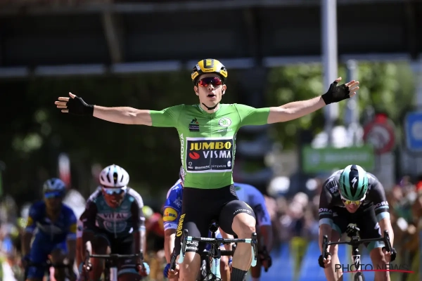 Alaphilippe wordt simpel uit het wiel gereden door van Aert die zijn jump perfect timet. Bennett zat te ver gepositioneerd waardoor de Belg in loondienst van Jumbo-Visma met fietslengten voorsprong de etappe op zijn naam kan schrijven.