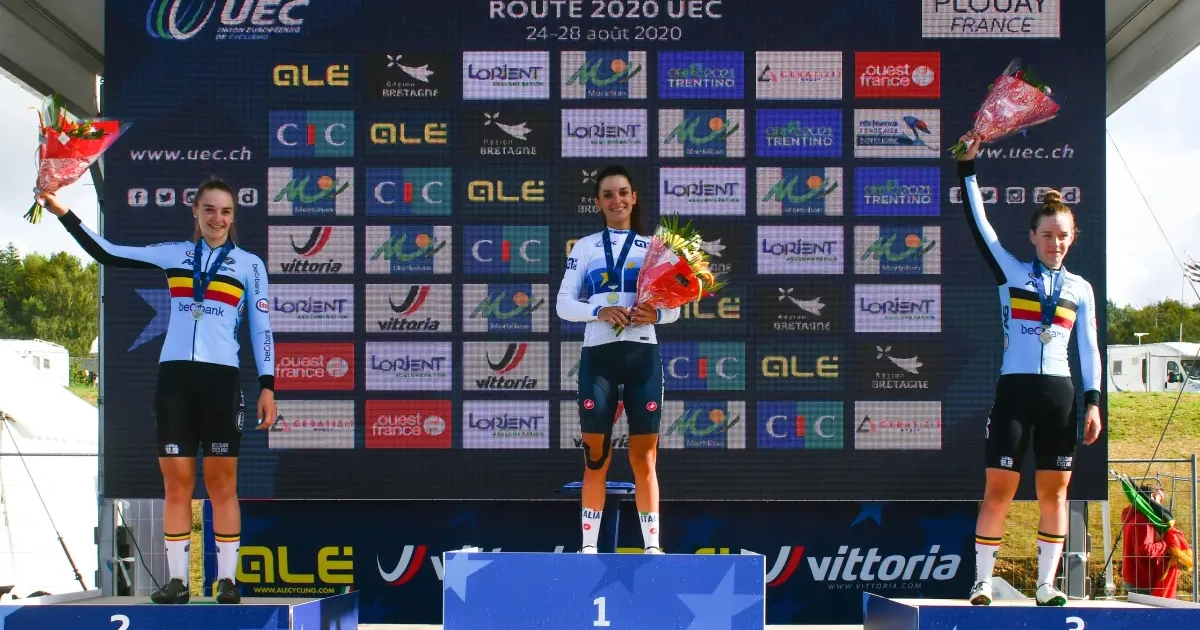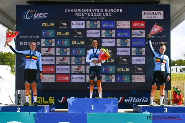 Er is toekomst voor het Belgische dameswielrennen! Dat hebben Marith Vanhove en Katrijn De Clercq bewezen door op het EK voor juniores zilver en brons te pakken. Het goud was Eleonora Gasparrini. Ook in deze categorie werd het in Plouay dus een massasprint.