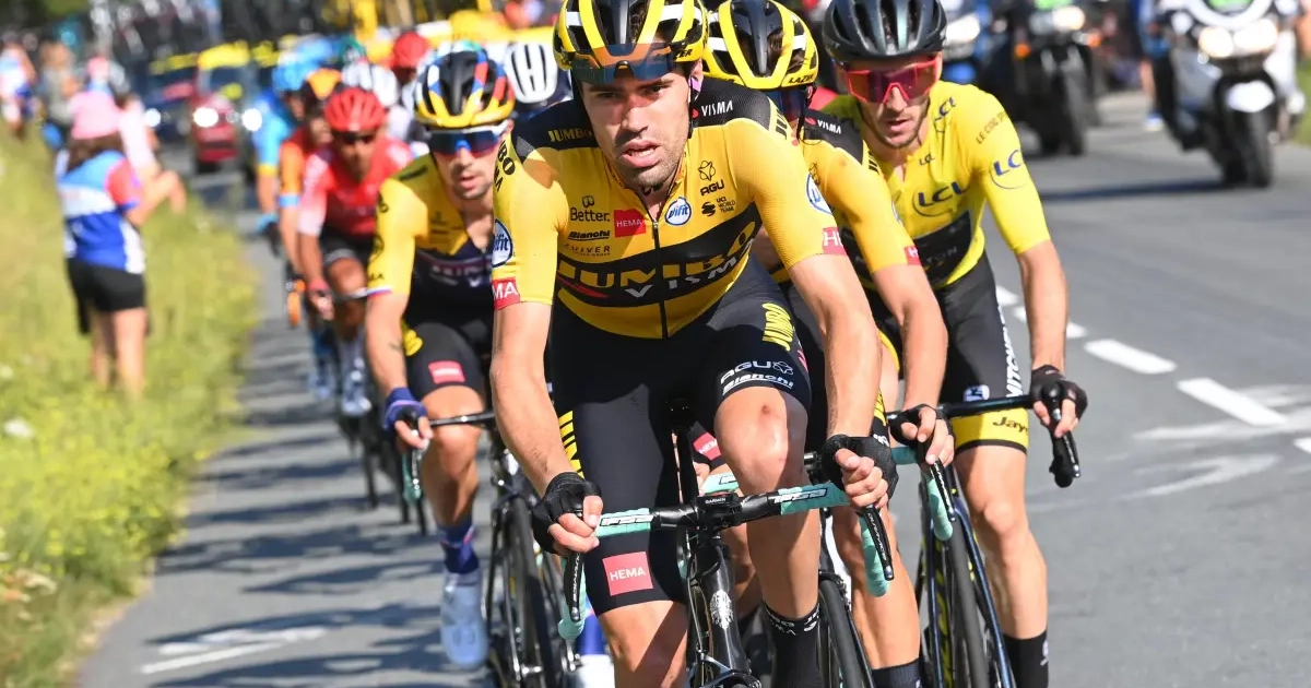 Dumoulin gaf de vorige dagen al aan niet echt goed te zijn en zette zich op de Peyresourde op kop, in dienst van Roglic. Dumoulin maakte er nog een flinke kopbeurt van, maar verloor daarna natuurlijk zelf wel tijd. Bij Jumbo-Visma zetten ze alles op Roglic. Niet geheel zonder risico, want die bleek ook niet helemaal onfeilbaar. Anders was hij wel meegegaan met zijn landgenoot Pogacar.