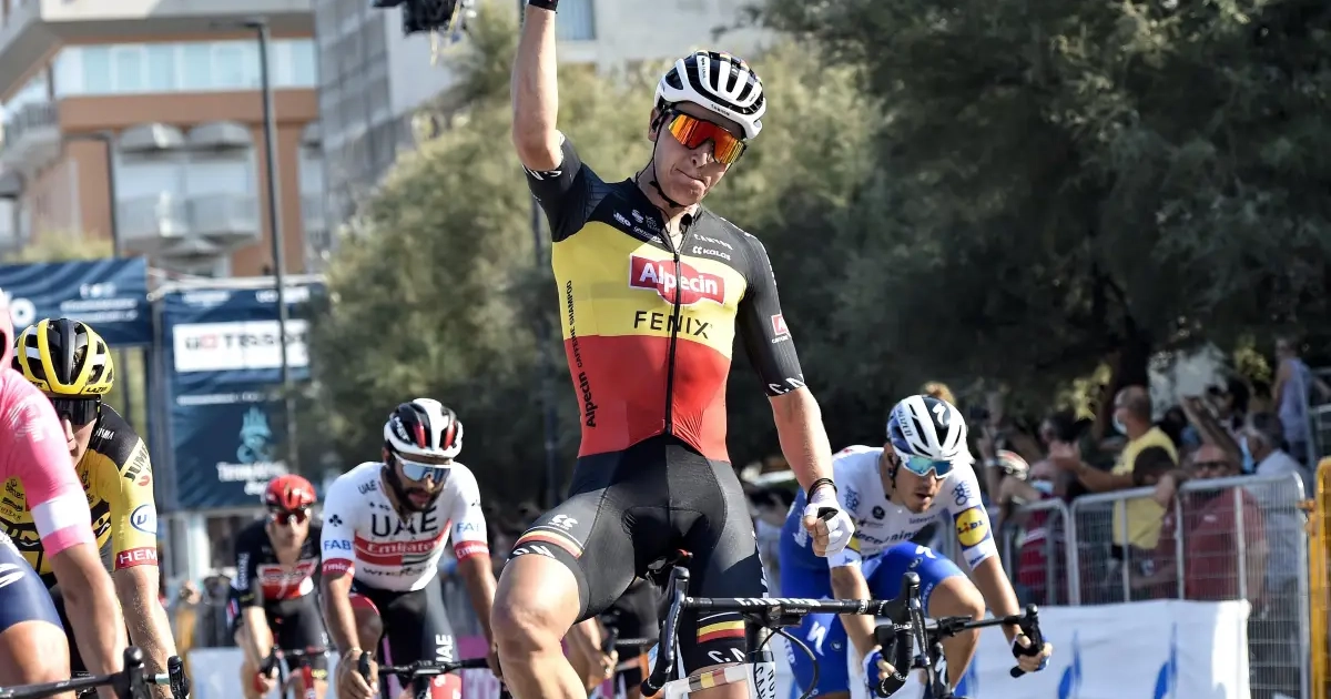 In de tweede etappe werd Merlier nog 5e, maar zaterdag was het wel raak in de Tirreno-Adriatico. De Belgische kampioen reed een ijzersterke sprint en won voor Ackermann en Magnus Cort Nielsen.