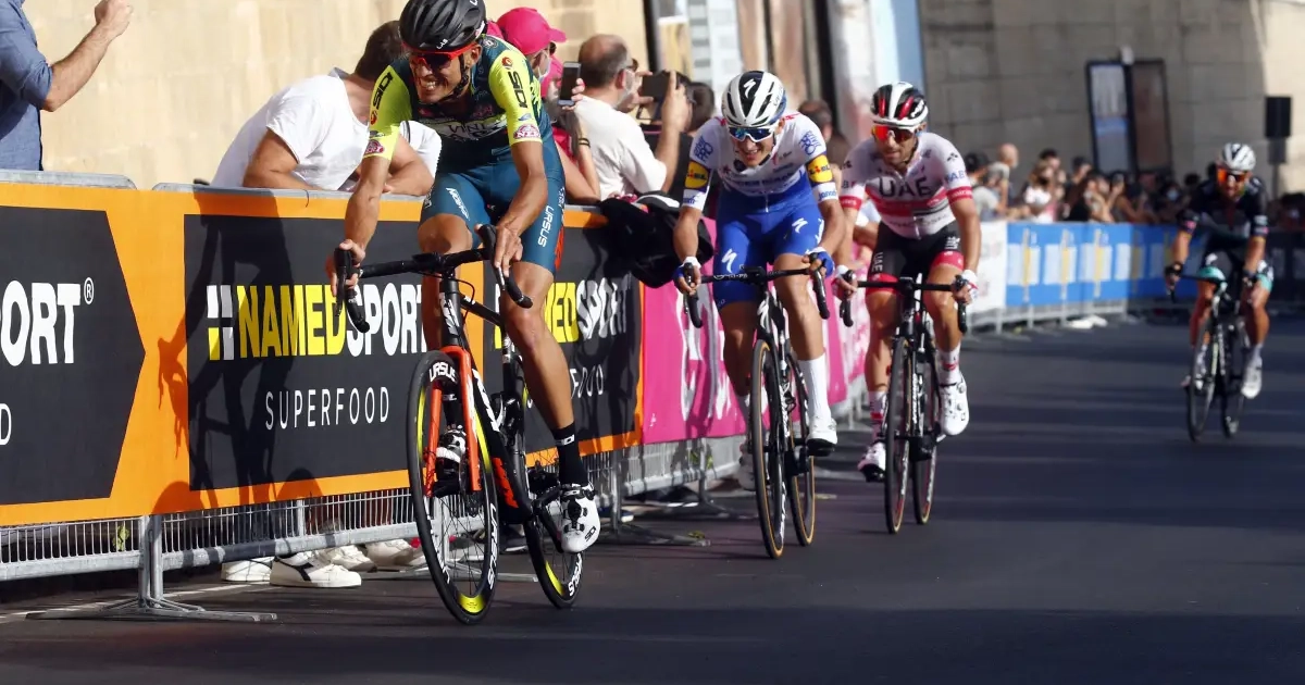 Daar lagen ze dan, de twee renners van Vini Zabù - KTM. In de buurt van de plek waar ze op grond lagen, was ook een hekkenwerk geplaatst. Het kon haast niet anders of het ene had wel iets met het andere te maken en dat bleek ook.