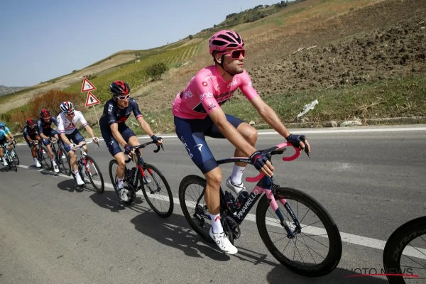 Bij de favorieten probeerde Vincenzo Nibali zijn concurrenten te lossen in de afdaling, maar ze gaven geen ruimte. De elitegroep kwam samen binnen op zo'n 45 seconden van Ganna. Ook João Almeida, de leider in het algemeen klassement, en onze landgenoot Harm Vanhoucke kwamen binnen met de favorieten.