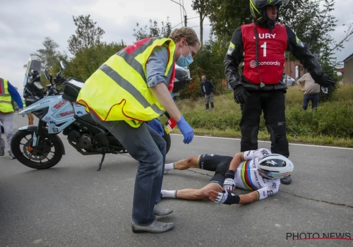 De wereldkampioen wilde ook al een korte reactie kwijt. "De valpartij was een eng moment. Toen ik op de grond lag, dacht ik het ergste. Gelukkig is het niet zo erg. Ik ben de wedstrijddokters erg dankbaar, maar ook de medische staf in de ziekenhuizen van Ronse en Herentals, voor alles wat ze de laatste 24 uur voor mij gedaan hebben."