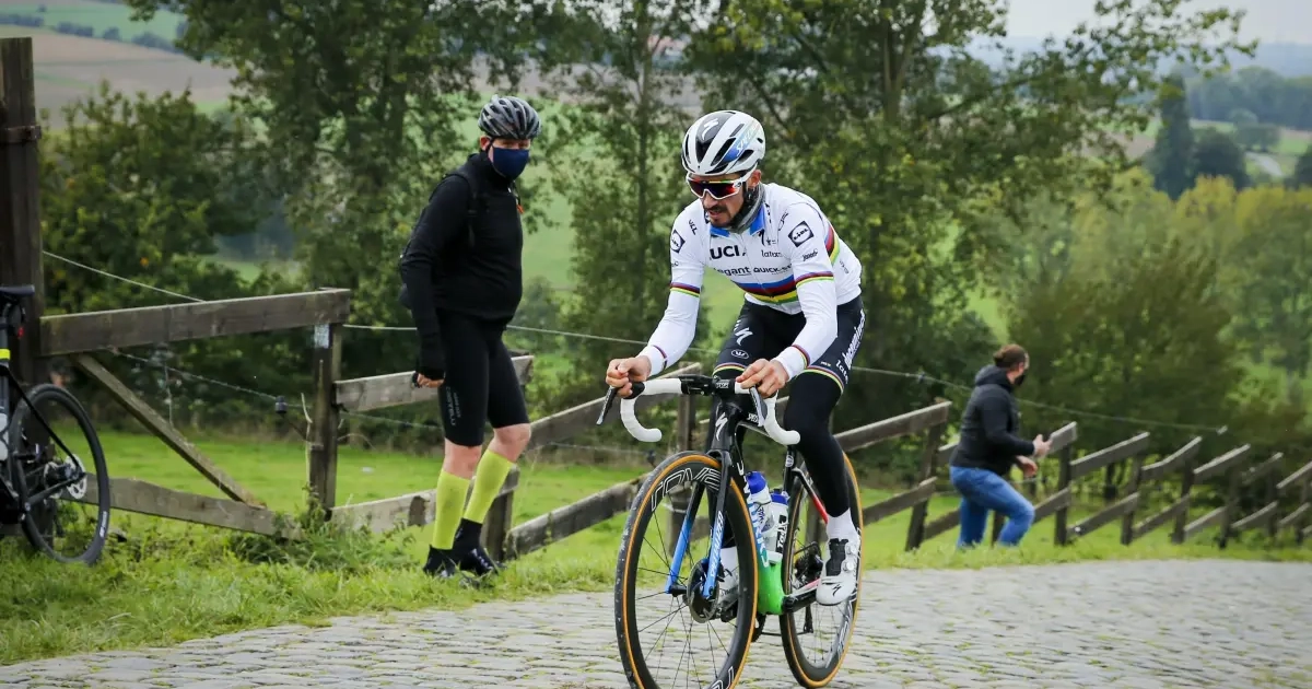 De Fransman zag er enorm goed uit en nam de hellingen met sprekend gemak. Ook Patrick Lefevere denkt dat Alaphilippe dé grote favoriet was, maar dan kwam die botsing.