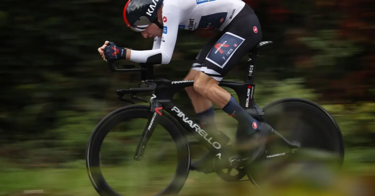 16U27: De eindtijd van Tao Geoghegan Hart: 18 minuten en 14 seconden. Dat moet voldoende zijn om de Giro te winnen.
