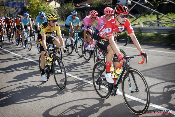 NOG 7 KM: Het is nu al Jumbo-Visma wat de klok slaat op de kop van de groep der favorieten, die nog een twintigtal renners sterk is.