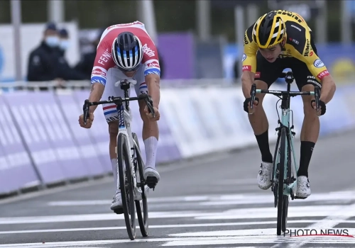Een sprint dan maar zoals in de Ronde van Vlaanderen? "Van der Poel en Van Aert zijn zo aan elkaar gewaagd. Als het in een wegrit van 243 kilometer maar op enkele centimeters aankomt, dan krijgen we zondag met een beetje fantasie opnieuw zoiets. In die laatste rechte lijn kan je een mooie sprint rijden. Hier kunnen gemakkelijk 2 mannen naast elkaar rijden.”