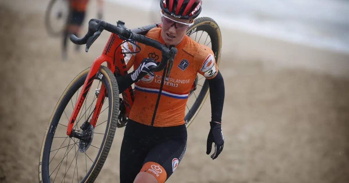 Was er een plek waar Lucinda Brand het verschil kon maken? "Ik weet niet of ze wel ergens een verschil gemaakt heeft. We reden op hetzelfde niveau. Het moeilijkste deel was de afdaling voor de brug. Dat was het zwaarste. Je kiest voor een bandtype om goed door het zand mee te rijden. Dan is het moeillijker om door de glibberige modderstroken te rijden."