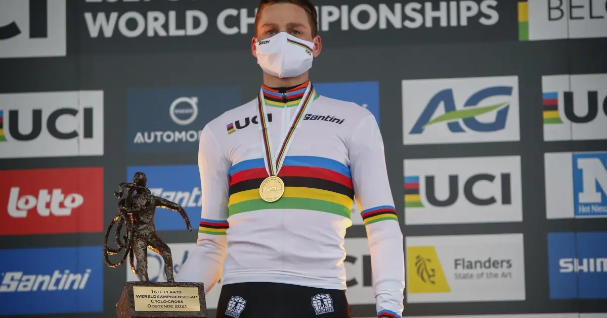 Mathieu van der Poel veroverde in Oostende zijn vierde wereldtitel in het veld. Zet hij de jacht in op de zeven wereldtitels van recordhouder Erik De Vlaeminck? "Dat is niet iets dat je vooraf als doel stelt. Je wilt 1 maal wereldkampioen worden en nadien groeit dat. Als dat record meer in zicht komt, kan dat wel een doel worden. Het is niet zo dat ik daar nu al mee bezig ben. Er is nog een lange weg te gaan."