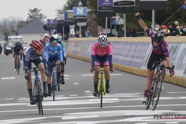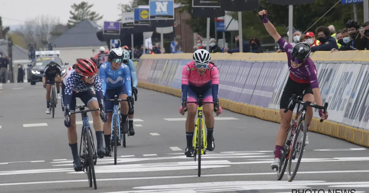 Zo kwam het dat ze met zijn zessen konden sprinten voor de overwinning. Balsamo was een belangrijke klant, maar de Italiaanse zette haar sprint te vroeg in en moest genoegen nemen met plek drie. Vollering juichte op de streep, maar haar voornaamste opponente Winder keek al eens bedenkelijk.