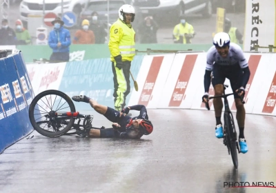Uit de beelden kunnen we opmaken dat Thomas nog wou schakelen maar toen leek uit te glijden met zijn hand. Bij Cyclingpro vertelt hij het relaas van de val.