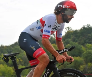 Fernando Gaviria heeft er een vreemde rit op zitten. De Colombiaanse sprinter bereikte de eindmeet zonder zadel op zijn fiets.