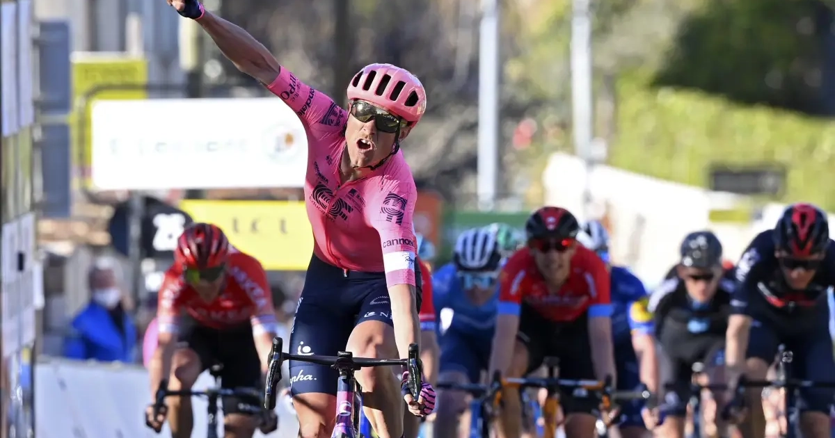 Het kwartet was zeker nog niet buiten schot, want er kwam nog druk van achteruit. Enkel Vines bleef als laatste weg tot in de laatste kilometer, maar ook zijn onderneming was tevergeefs. Het zou dus een sprint worden, maar welke rappe mannen waren er nog mee? Het was een duel tussen Magnus Cort en Bagioli. Cort pakte zijn tweede ritzege, het werd net niet voor Deceuninck-Quick.Step.