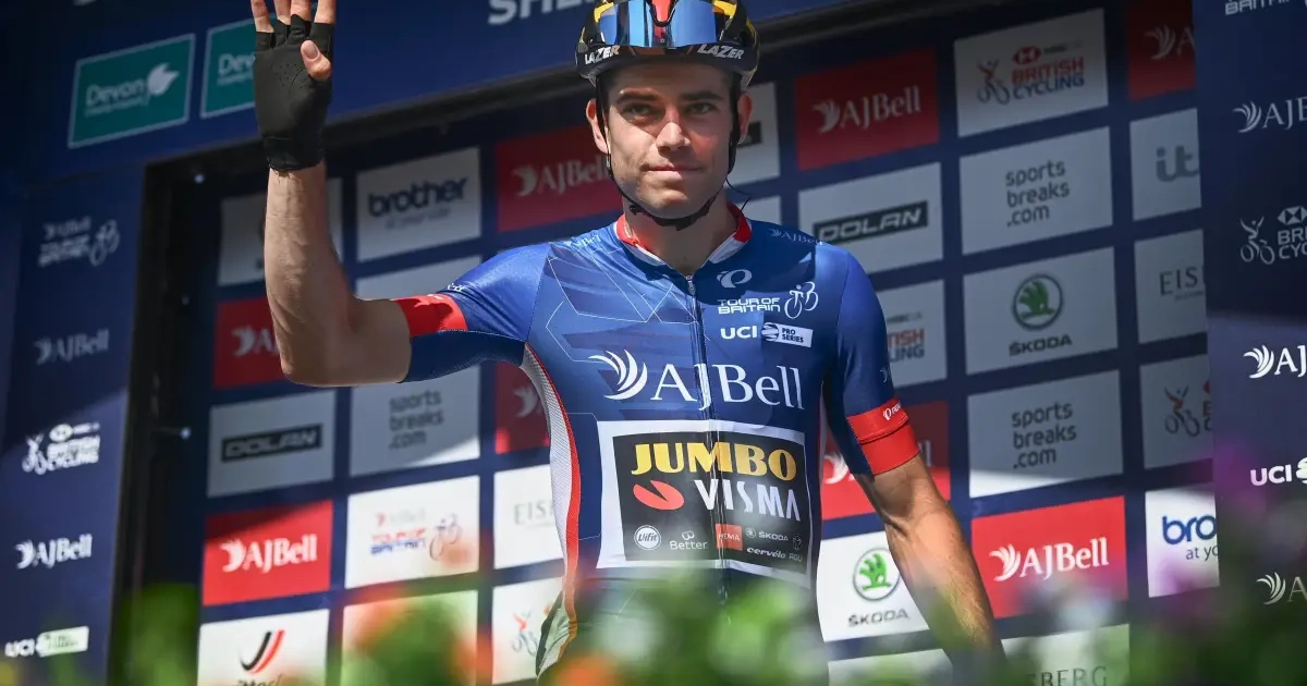 Het is voorlopig slechts één dag in de leiderstrui geworden voor Wout van Aert. De Amerikaan Robin Carpenter gaat naar de leiding in de Tour of Britain. De vroege vluchter bleef voorop en schonk Rally Cycling dubbel succes.