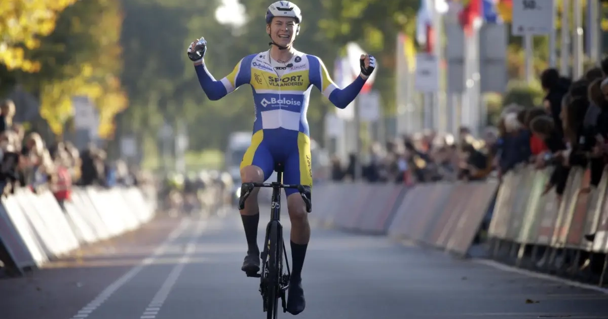 De dreiging bleef ook wel van achteruit, maar het peloton kwam toch te laat. Op het einde volgde nog 1,3 kilometer oplopend. Op die laatste lastige meters spatte het toch uiteen vooraan en Rune Herregodts ontbond nog helemaal zijn duivels: de Oost-Vlaming bleek veruit de sterkste, voor Bassett en Okamika. De Vylder werd vijfde.