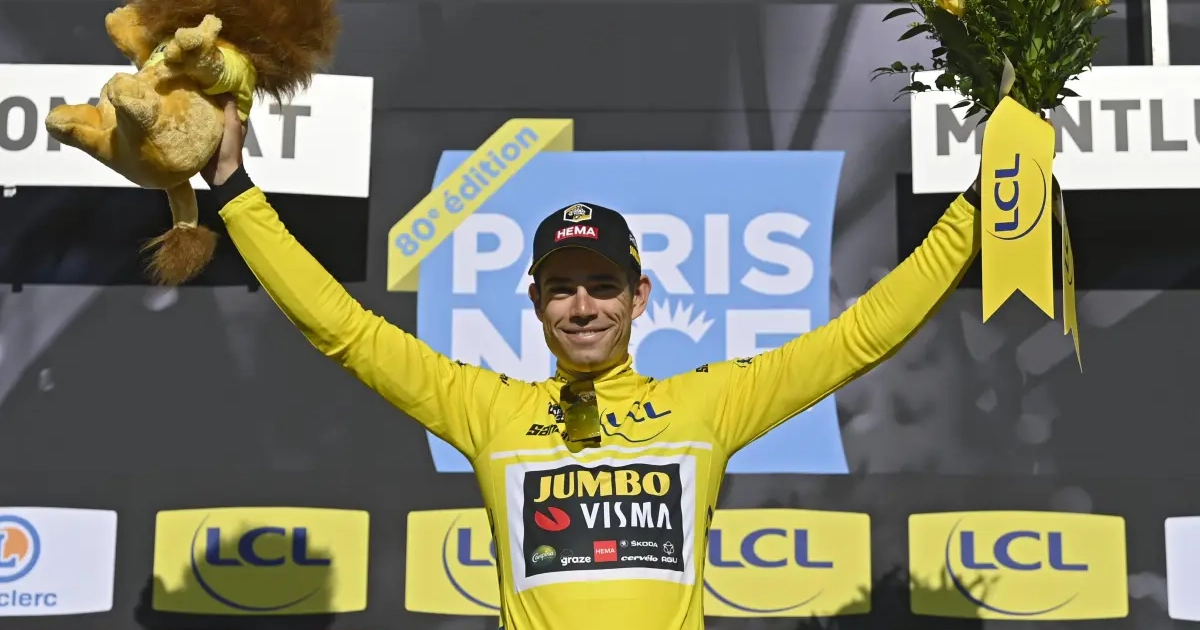 Wout van Aert pakte woensdag de dubbel in Parijs-Nice. Hij won de tijdrit en wordt ook de nieuwe leider.