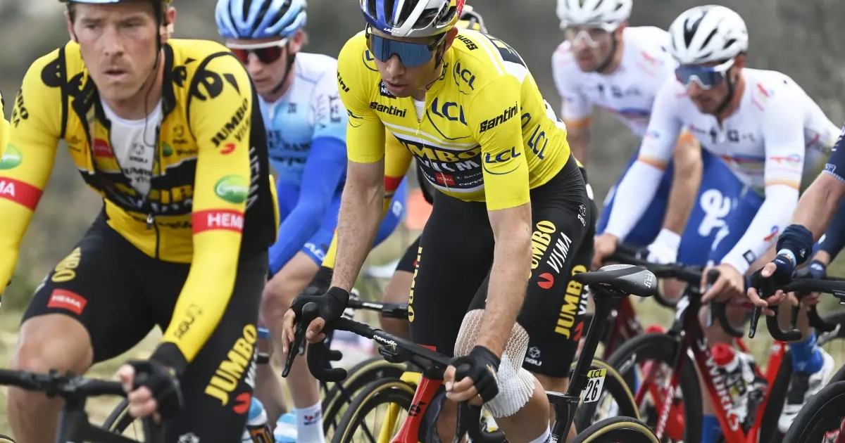 Roglic nam de leiderstrui over van Van Aert. “Ik zal hem waar nodig nog helpen in het weekend, maar momenteel doet Primoz het heel goed. Alles gaat eigenlijk prima.”