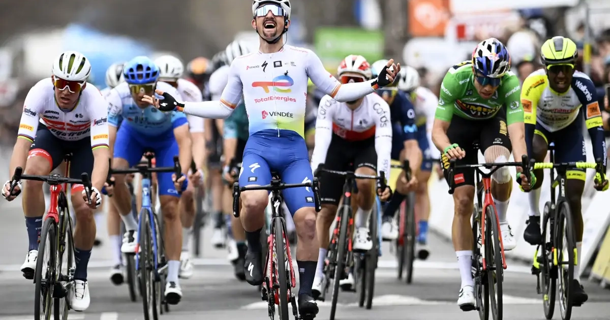 Zou de zesde rit in Parijs-Nice iets voor aanvallers of sprinters worden? Een Wout van Aert had bij een groepssprint een gooi kunnen doen naar de overwinning. Het werd inderdaad een spurt, maar vlak voordien was Mathieu Burgaudeau al over de streep gekomen.