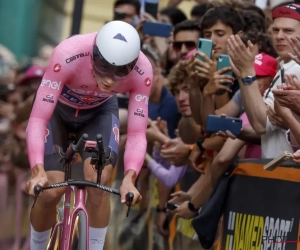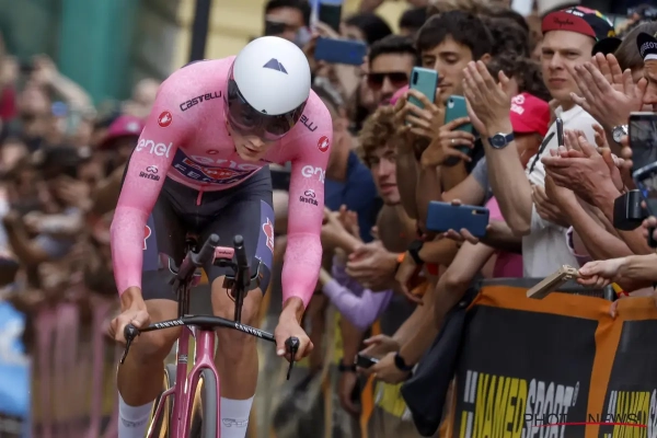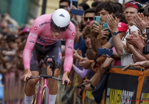 Eén dag had hij op de tijdritfiets getraind en dan zo'n prestatie neerzetten. Een roze Van der Poel krijgt vleugels van die speciale trui die hij mag aantrekken.