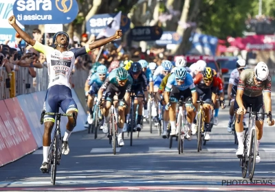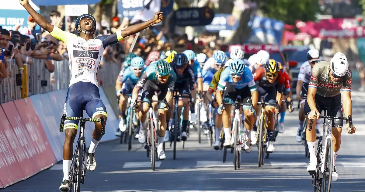 Girmay haalde het in de sprint van de tiende etappe in de Giro van Mathieu van der Poel. Een nieuw moment van geschiedenis schrijven voor de Eritreeër.