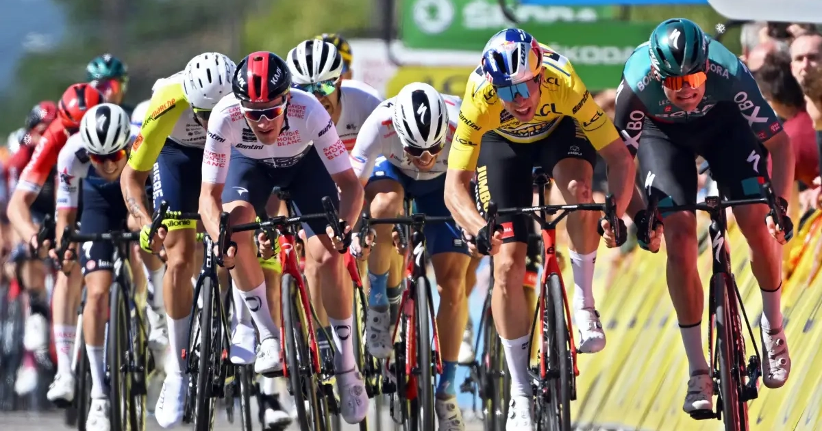 Landgenoot Jordi Meeus legt Wout van Aert het vuur aan de schenen in de vijfde rit van de Dauphiné. Als opkomende man heeft Meeus wellicht de meeste snelheid, maar Van Aert heeft zijn sprint op het juiste moment gelanceerd en houdt goed de koord. Van Aert houdt stand, goed voor zijn tweede ritzege in de Dauphiné.