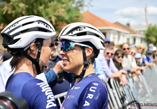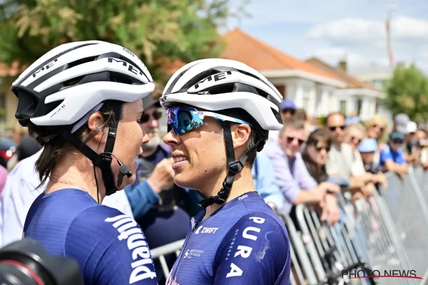 Ook onderling zijn de relaties goed. Eentje in het bijzonder, zo blijkt. Na de koers deelden Kim de Baat en Sanne Cant een innige kus. Dat was toch wel meer dan een doordeweekse zoen, niet? Op zo'n moment nemen de emoties het over.