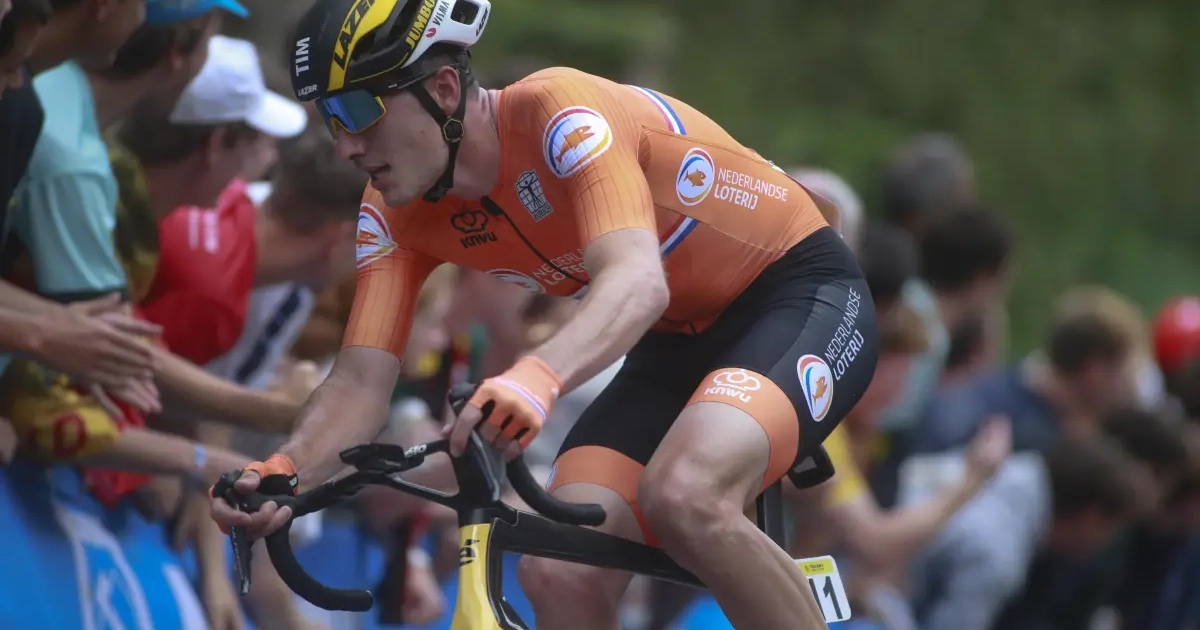De WK-wegwedstrijd voor beloften is in volle gang. Mick van Dijke kon helaas niet van start gaan. De coureur die eerder deze week de tijdrit reed in deze leeftijdsklasse testte in de aanloop naar de wedstrijd van vrijdag positief op COVID-19. We wensen hem een spoedig herstel