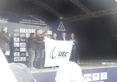 Een delegatie van de organisatie in Pontchâteau was ook in Namen ter plekke om te zien hoe alles daar in zijn werk ging. Vlak voor de podiumceremonie van de vrouwen beloften verscheen die afvaardiging ook op het podium om de UEC-vlag omhoog te houden.