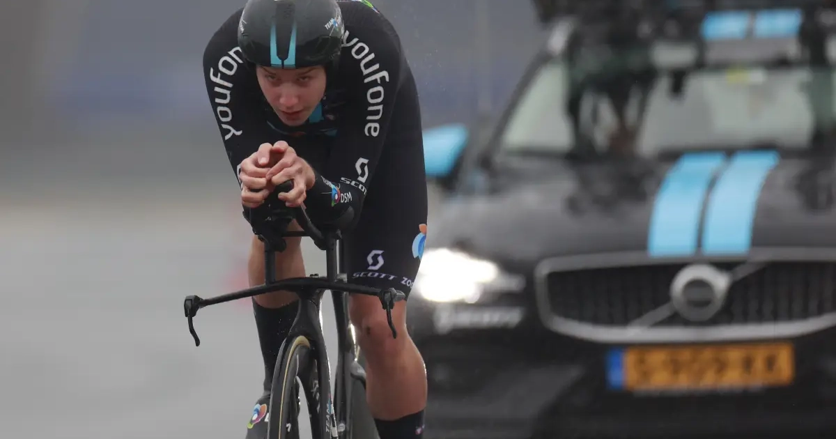 Vlad Van Mechelen (18) heeft opnieuw indruk gemaakt. In de openingstijdrit van de Olympia's Tour (2.2) in Nederland werd hij maar nipt geklopt.