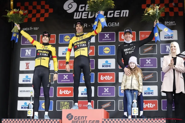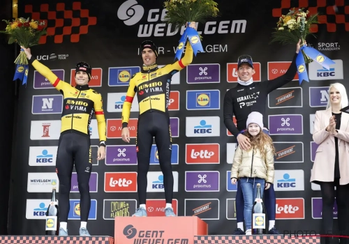 π₯ Daar is de kleine zetel weer: Van Aert en Laporte dollen na demonstratie in Gent-Wevelgem
