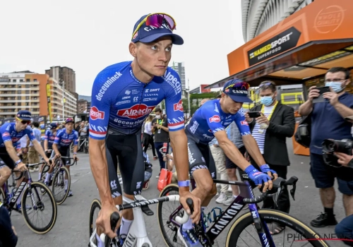 Voor de tweede dag op rij zette Mathieu van der Poel zijn kopman Jasper Philipsen perfect af in de sprint. Hij moest daarvoor wel even ruimte maken voor zichzelf en gaf Biniam Girmay een duw met de schouder.