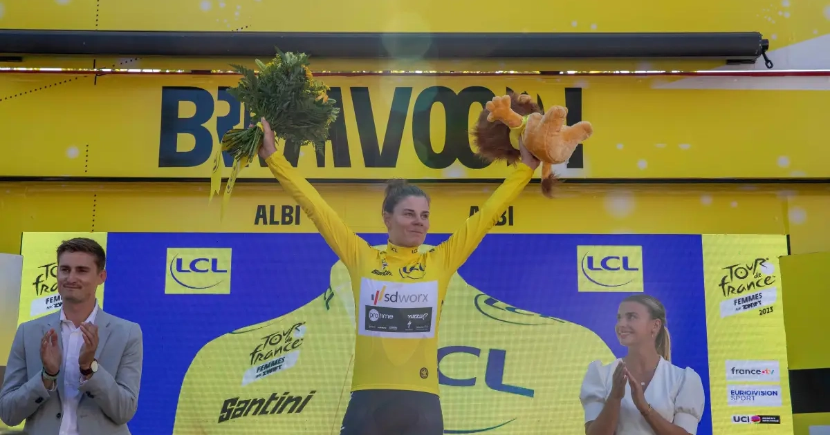 Lotte Kopecky is al zeker van de groene trui. Na de 6e rit is ze mathematisch zeker. In die rit werd ze 3e, maar was ze ook gefrustreerd.