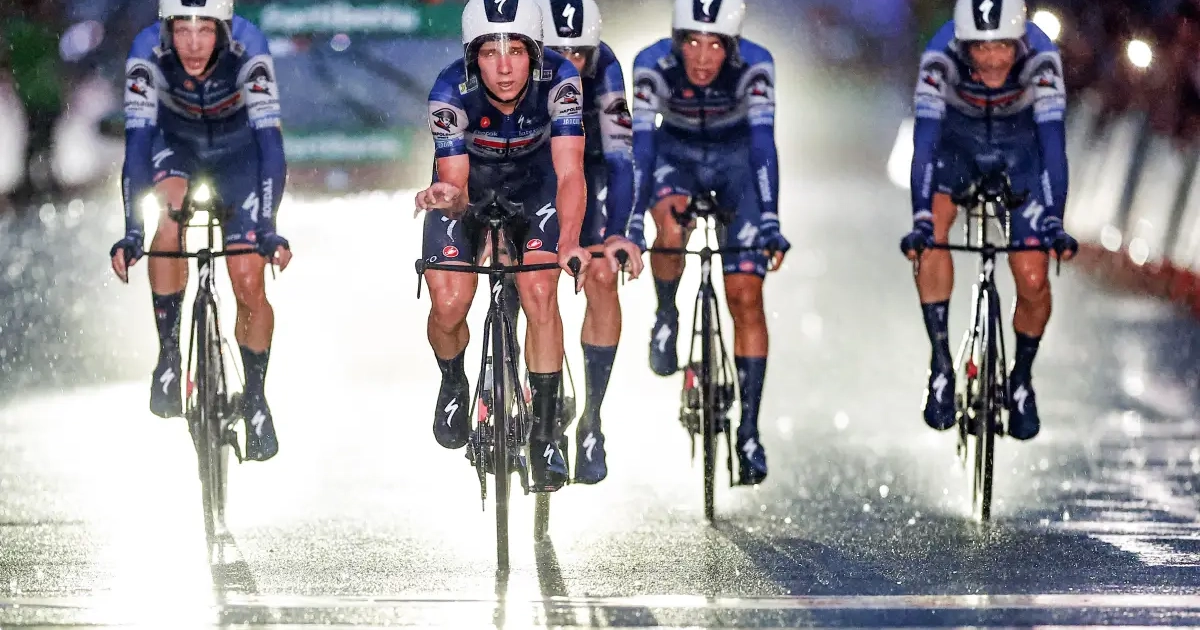 Dsm-firminich (Romain Bardet) won de tijdrit en Movistar (Enric Mas) eindigde in dezelfde tijd 2e. Daarna kwamen 3 teams met onder meer Soudal Quick-Step (Remco Evenepoel) op 6 seconden.