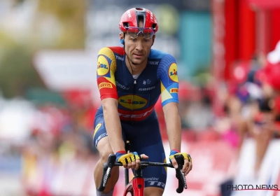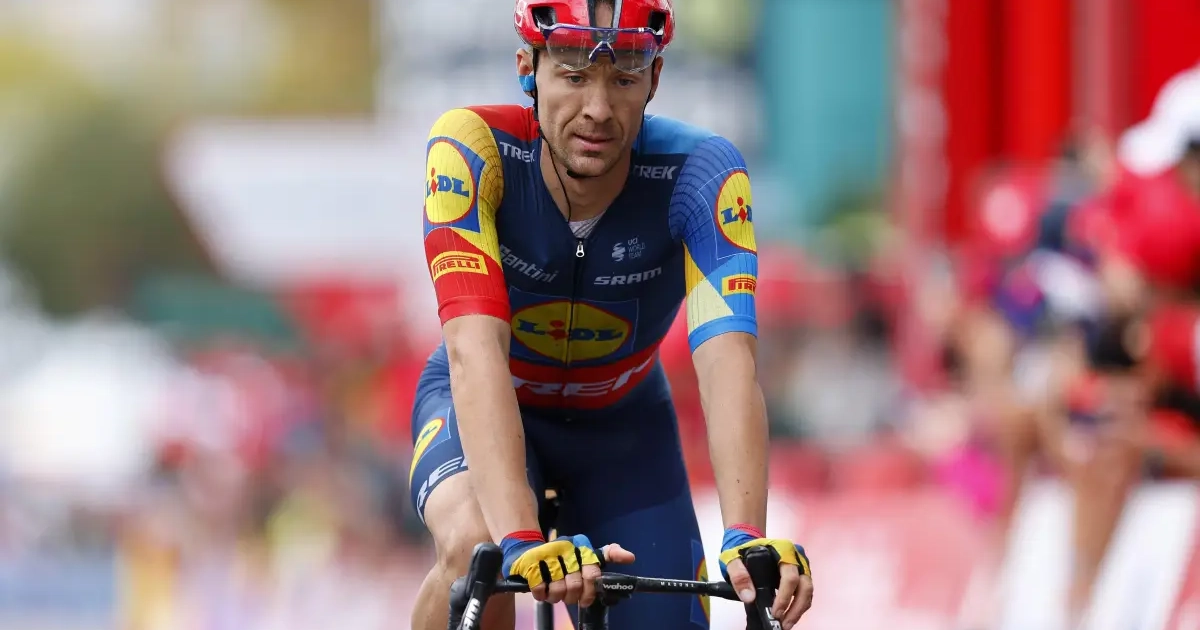Edward Theuns werd dinsdag knap derde in de vierde etappe van de Vuelta. Al kon hij wel nog net op tijd ontsnappen aan een valpartij.