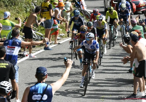 De Zuid-Amerikaan werd op dit moment, op 38 kilometer van de aankomst, dus door een ander team van drank voorzien. Het was het omgekeerde tafereel dan we een dag eerder gezien hadden. Verzorgers van Jumbo-Visma weigerden toen een bidon te geven aan Romain Bardet van dsm-firmenich.